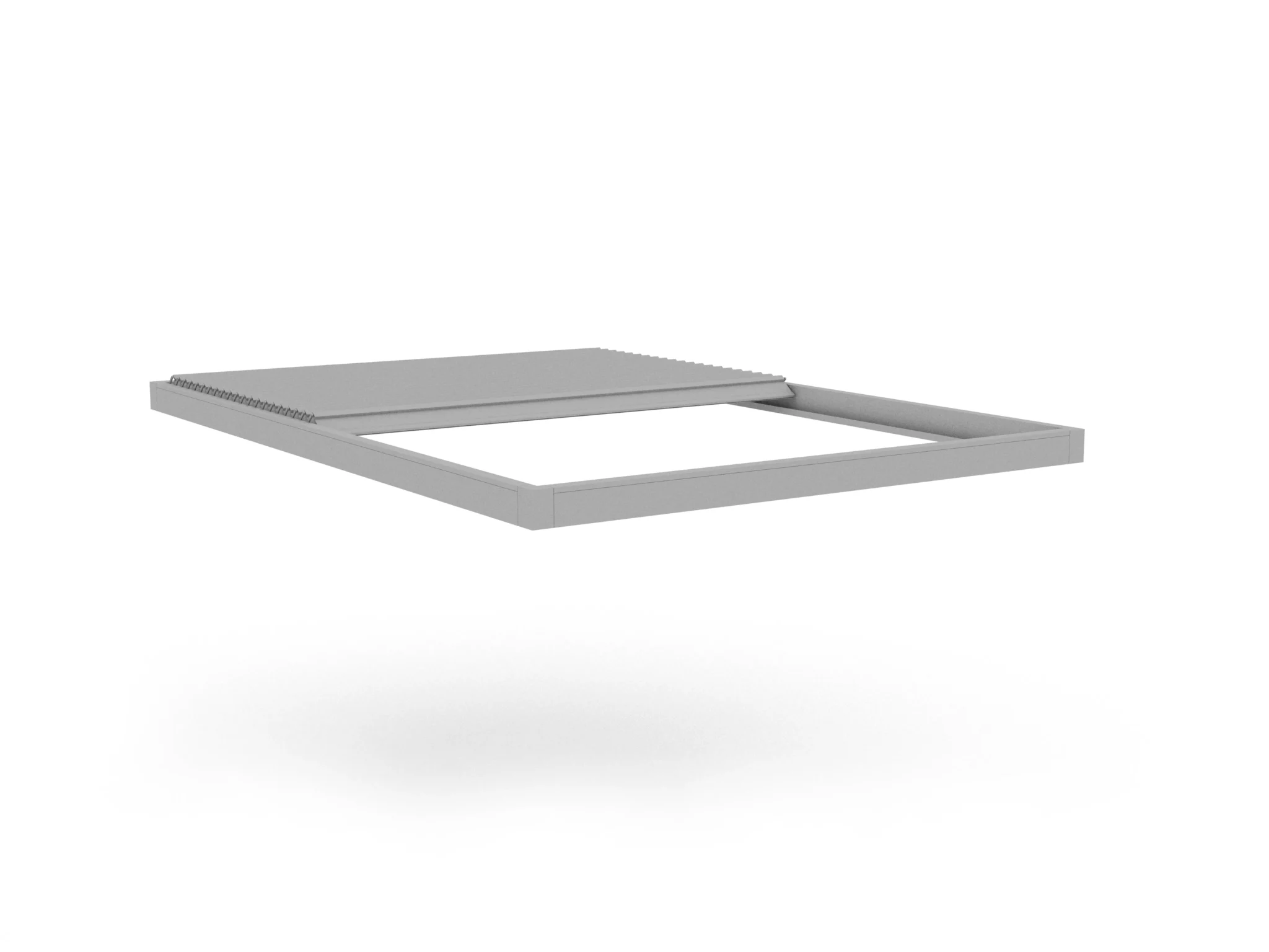 SUSTAV ODVODNJE VODE: Kada su lamele zatvorene, lagana kišnica se kanalizira u integrirani sustav odvodnje pergole. Međutim, budući da su stupovi eliminirani u modelu B, korisnik mora samostalno riješiti odvodnju vode iz uglova strukture.